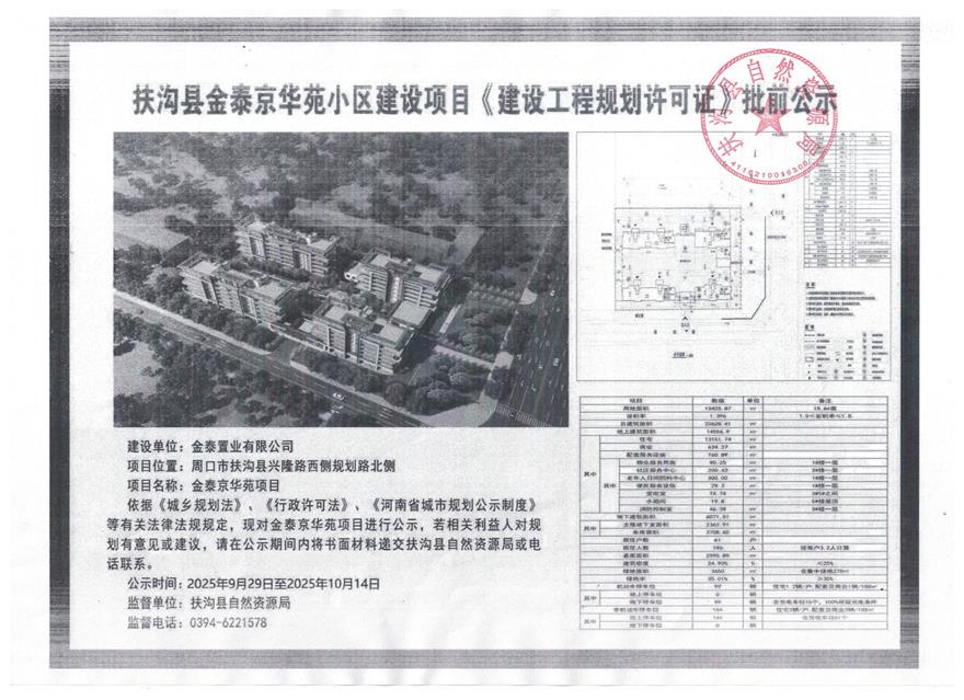扶沟县金泰京华苑小区《建设工程规划许可证》批前公示