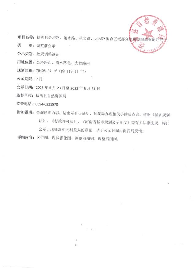 扶沟县金塔路、洧水路、星文路、大程路围合区域部分地块控规调整论证报告