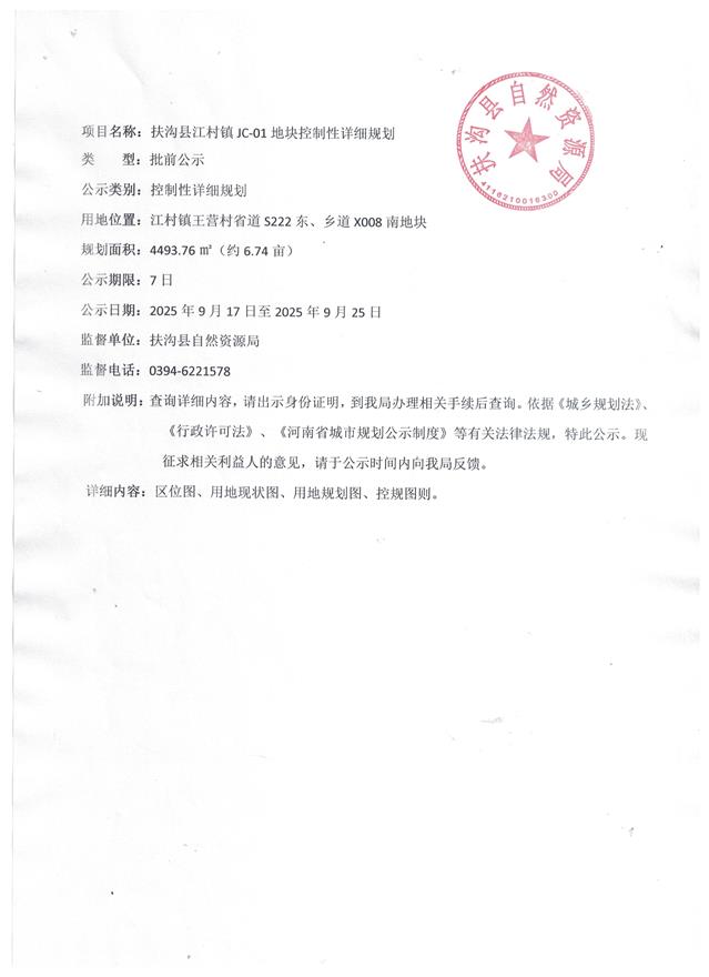 扶沟县江村镇JC-01地块控制性详细规划