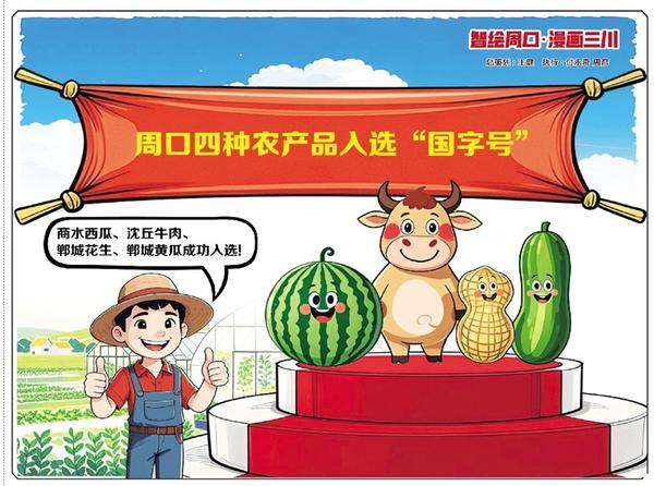 2025年5月,农业农村部农产品质量安全中心公布2025年第一批全国名特优新农产品名单,商水西瓜、沈丘牛肉、郸城花生、郸城黄瓜(周彦图)