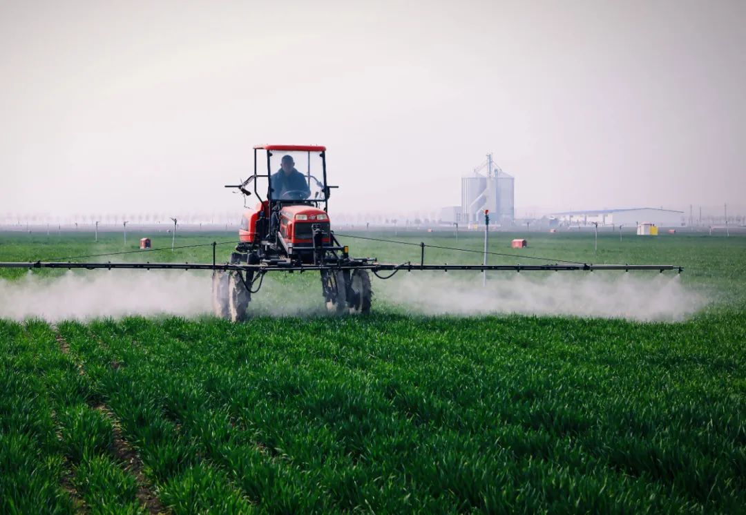 3月23日,商水县舒庄乡,一架标准化农田喷药机为麦苗喷洒农药。(焦建文摄)