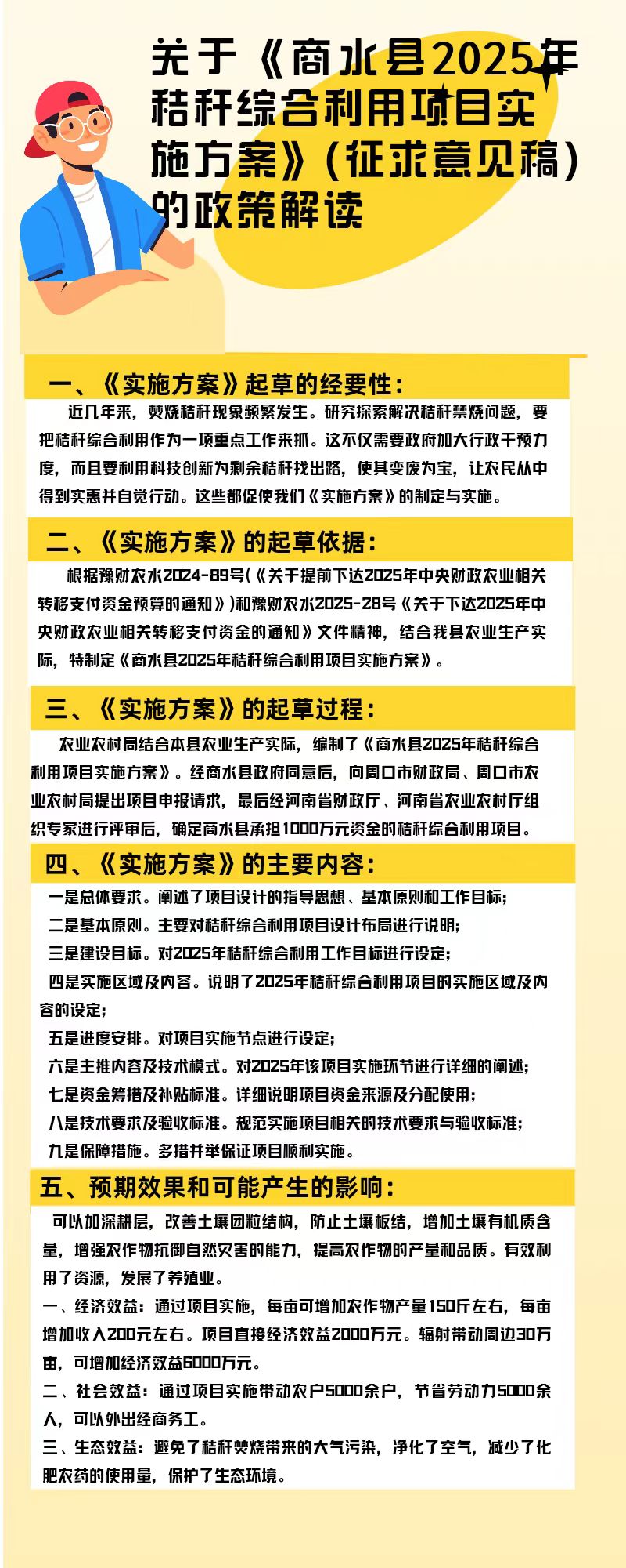 政策解读:一图读懂《商水县2025年秸秆综合利用项目实施方案》(征求意见稿)