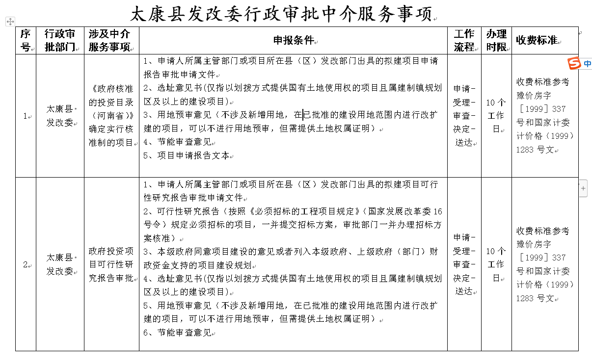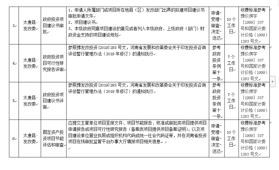 太康县发改委行政审批中介服务事项