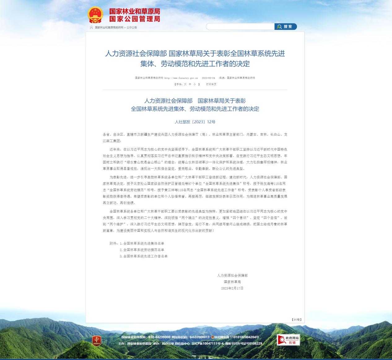 县林业局全面贯彻落实习近平生态文明思想,科学践行“绿水青山就是金山银山”的发展理念,坚定不移走绿色发展、生态惠民、生态利民、生态富民的道路。紧紧围绕“森林河南”建设目标,创新造林机制,统筹推进山水林田湖草沙一体化保护和系统治理,各项工作取得了良好成绩,为建设美丽太康做出了新贡献。2023年2月,被国家人社部、国家林草局授予《全国林草系统先进集体》荣誉称号。