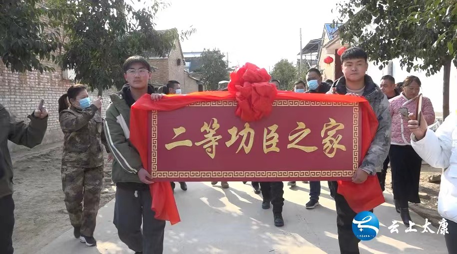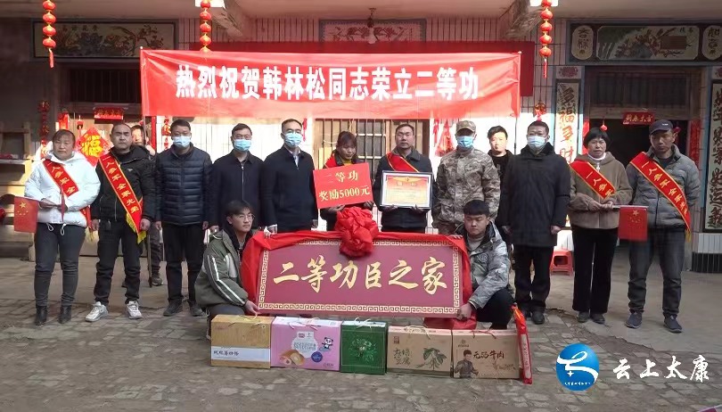 2月3日,县委常委、常务副县长邓昌锋,县委常委、县人武部上校政委郭立君,县退役军人事务局党组书记、局长李新生等一行,来到高朗乡北韩庄村现役军人韩林松家中,为其家人送去“二等功臣之家”牌匾、个人二等功喜报和奖金,并向其家人表示热烈祝贺。