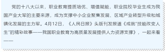 职业教育,既关乎国计,也涉及民生。近些年,职业教育在服务就业改善民生等方面发挥了越来越重要的作用。