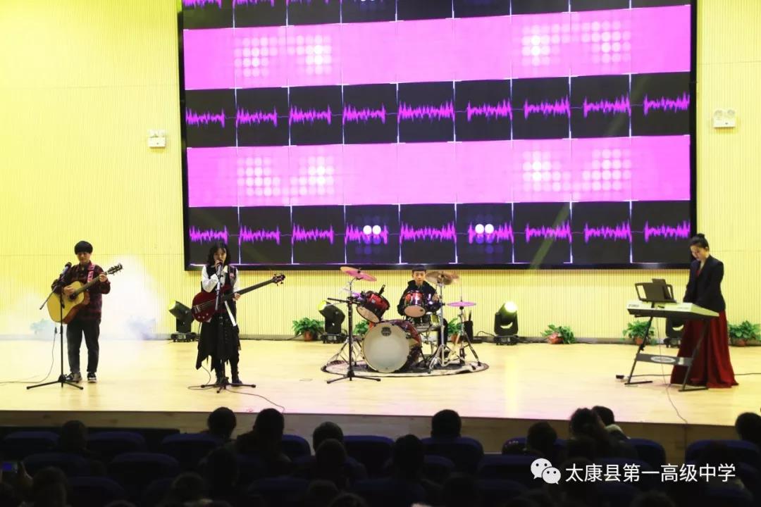 整台晚会,师生们自编自导自演,通过歌舞、合唱、戏曲、诗朗诵、架子鼓等20余个节目,为大家带来了一场视觉和听觉的盛宴。现场精彩纷呈,掌声迭起,充满了欢声笑语。学校领导班子成员同台献唱,诠释了和谐的力量;《太康一高校歌》,四位老师的深情演唱,歌颂了这片有梦的校园;太康一高中学部学生的《少年中国说》激起了师生强烈的民族自豪感;舞蹈《广寒宫》以曼妙优雅、婉约优美的舞姿吸引了在场观众的眼球;歌曲《四月半》、音乐诗朗诵《九月问答》、架子鼓独奏《TEBERIUS》等节目的精彩表演都成为了晚会的亮点;各备课组教师换下平日里的严肃,舞台上释放自我,将晚会推向一个个高潮。