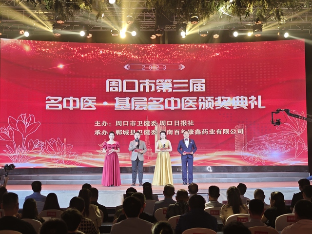 据了解,该评选推介活动由周口市卫生健康委员会、周口日报社主办,郸城县卫生健康委员会、河南百年康鑫医药有限公司承办。活动组委会本着“公开、公平、公正”的要求,经单位推荐、网络投票和专家评审,在众多候选人中评选出了10名“名中医”和10名“基层名中医”,并在颁奖典礼上予以表彰。