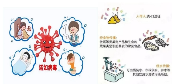 诺如病毒是通过消化道感染引起的急性胃肠炎,主要是通过接触感染的病人以及食用被病毒污染的水、食物等引起传播。诺如病毒具有潜伏期短、变异快、环境抵抗力强、传播途径多样的特点,人群普遍易感。
