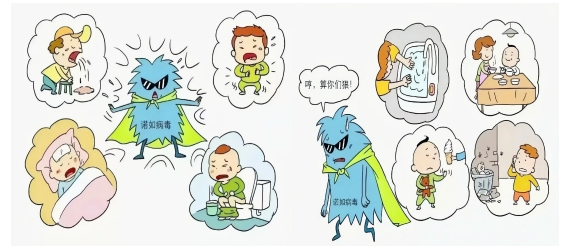 在诺如病毒感染的高发期,小朋友们尽量避免去人群聚集的地方,确需外出时做好自身防护和手卫生。