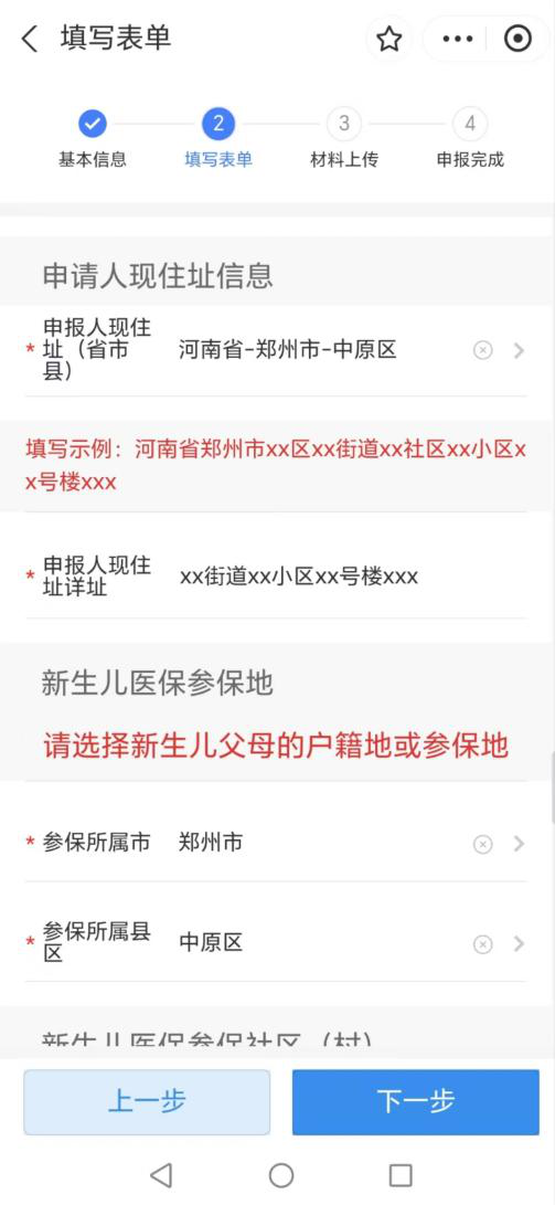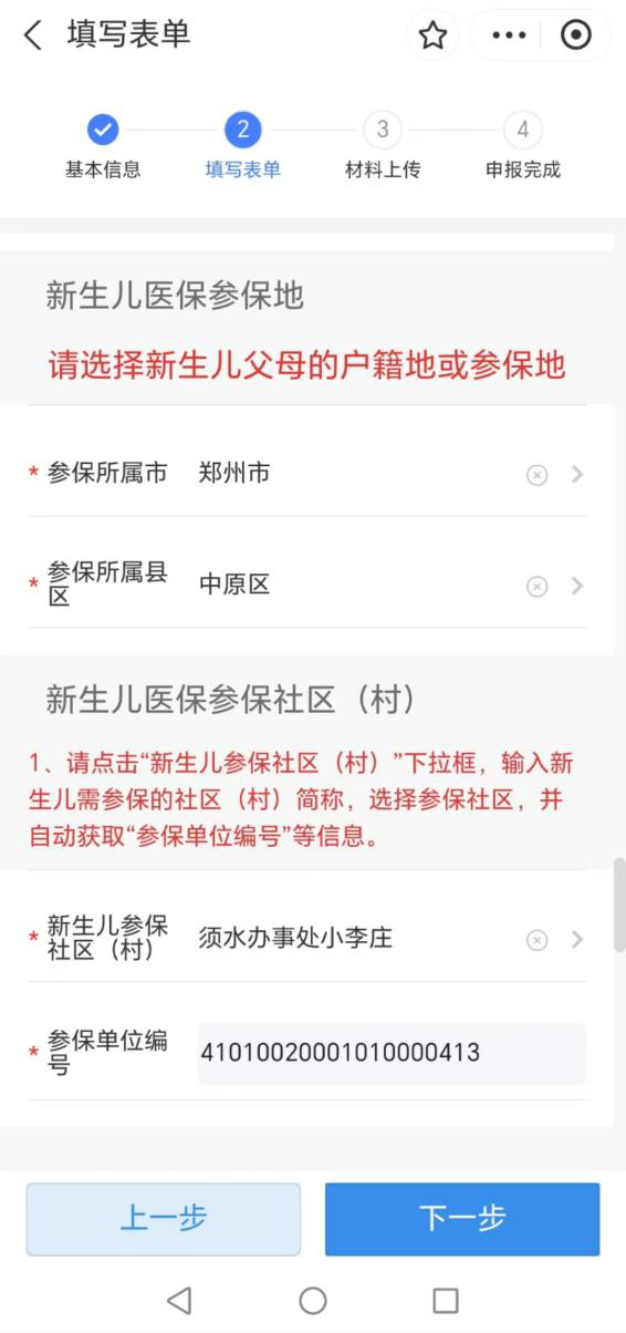 (6)填写新生儿医保参保信息