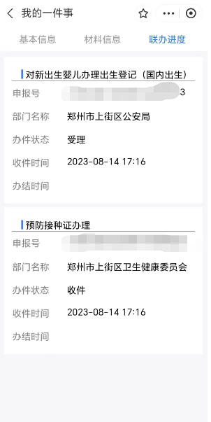 13、配偶签名完成后,您可以通过豫事办-我的办件,查询联办事项的办理进度。