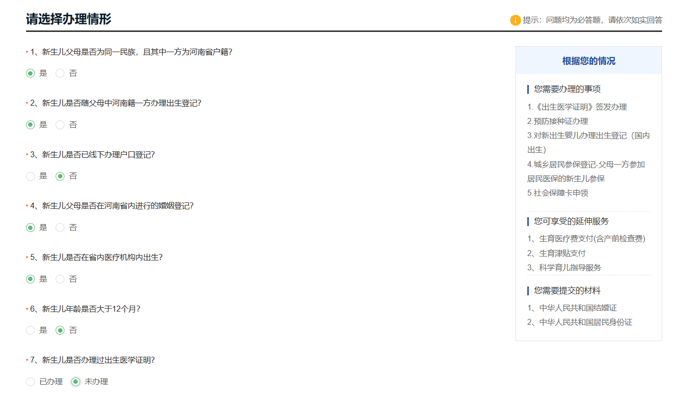 5、新生儿父母必须为河南省内办理的婚姻登记,且当前为婚姻存续状态。