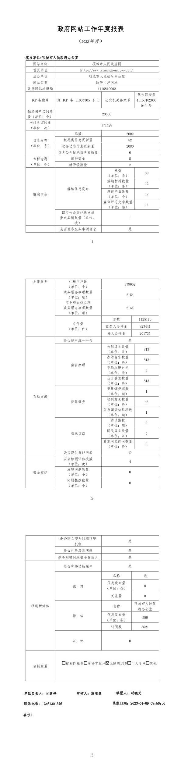 项城市政府网站2022年度工作报表