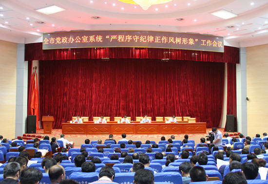 本网讯 为进一步严格工作程序,严肃工作纪律,端正作风,树好形象,促进办公室系统工作规范化、制度化运行,8月9日下午,全市党政办公室系统严程序守纪律正作风树形象工作会议在党政综合楼会议中心举行。市委常委、纪委书记刘海艇,市委常委、办公室主任毛磊出席会议。市政府秘书长、办公室主任刘德君主持会议。