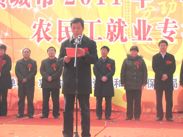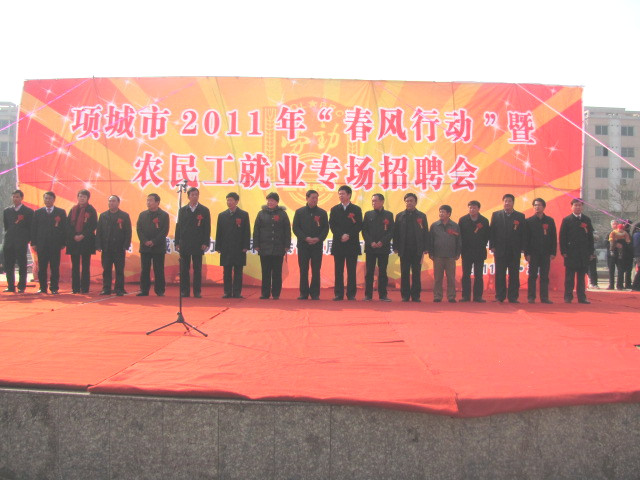 本网讯 春光明媚,万象更新。项城市2011年“春风行动”启动仪式暨农民工就业招聘会在市中心广场隆重举行,为用人企业和农民工提供一个沟通交流的平台,这标志着我市为期两个月的春风行动正式拉开了序幕。周口市人力资源和社会保障局副局长刘建芳,总就业指导师王建钧,就业服务中心主任刘富强;项城市人民政府市长邹洪,市委常委、常务副市长孙鸿俊,副市长刘玉世,市人大常委会副主任李峰岗,市总工会主席李怀义,市政府副秘书长、政府办公室副主任朱振华,市人力资源和社会保障局局长张国旗出席启动仪式。启动仪式由朱振华主持。