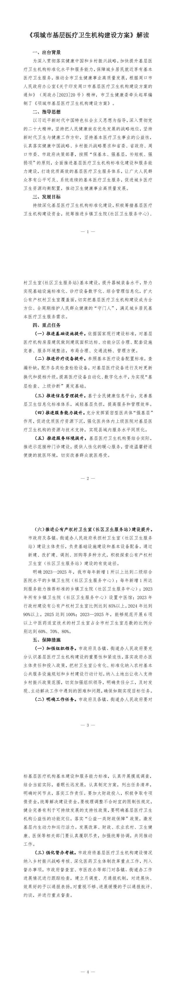 《项城市基层医疗卫生机构建设方案》解读