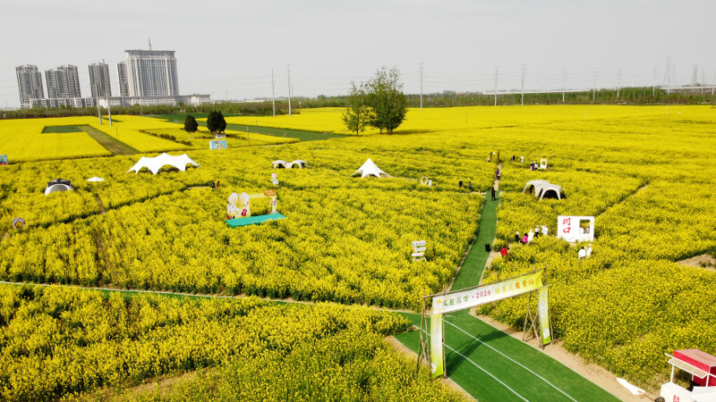 4月7日,春光明媚,引黄调蓄湖北岸风光正好,成片的油菜花田美如画。 (记者 刘俊涛 摄)