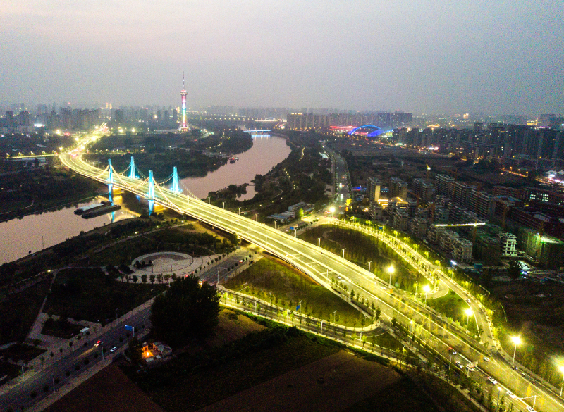 10月15日,华灯初上,中心城区七一路跨沙河大桥流光溢彩联通南北。夜幕笼罩下中心城区,华灯璀璨、霓虹闪烁,犹如一幅靓丽的山河画卷。近年来,我市着力于打造赏心悦目的夜间亮化景观,赋予城市新容颜,不断提升城市美誉度和人民群众的幸福感。(记者沈湛摄)