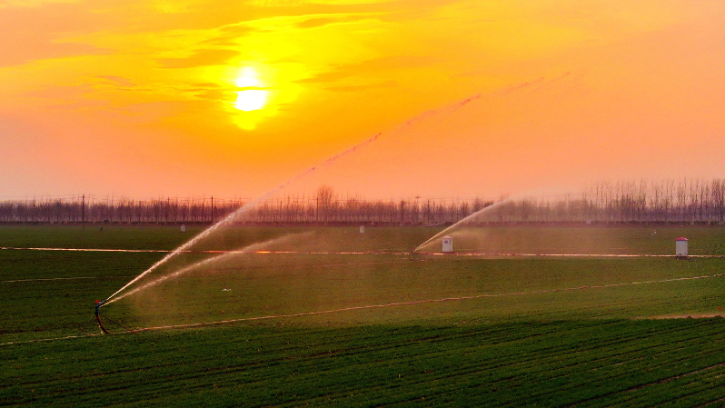12月8日,在扶沟县大李庄街道中营村的农田里,农户正抓紧趁晴好天气为冬小麦浇灌封冻水。当前正值小麦越冬管理的关键时期,适时浇灌封冻水能够稳定地温、防止冻害,同时为麦苗春季返青积蓄水分,对保障明年夏粮丰收具有重要意义。(黄金峰 摄)