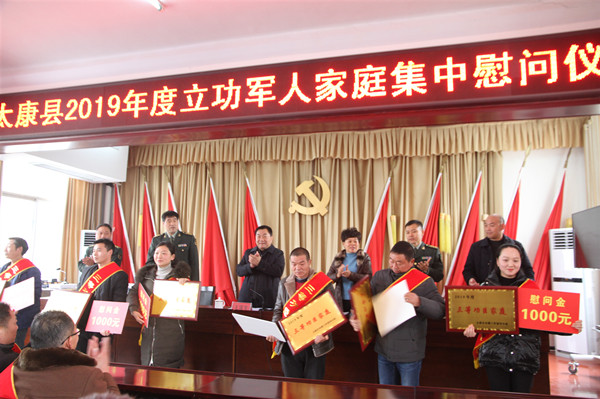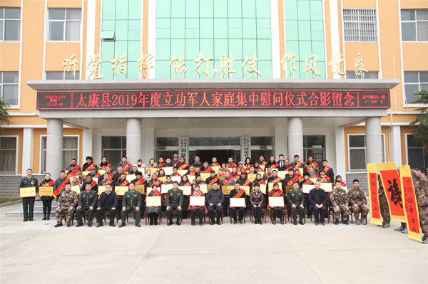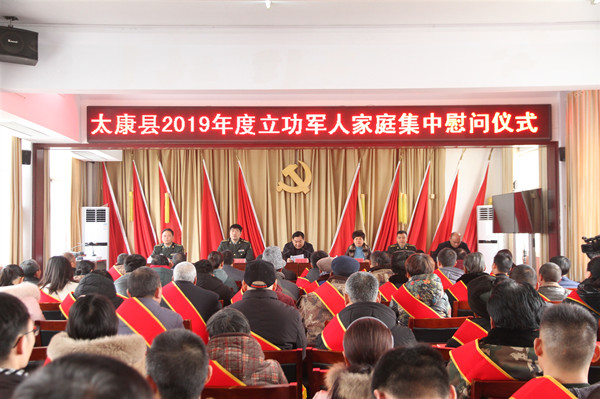 1月13日,我县在人武部四楼会议室举行2019年度立功军人家庭集中慰问仪式。县委书记王国玺,县委常委、县委办公室主任张雪芳,县委常委、县人武部部长于永前,政委郭立君出席仪式。立功受奖军人家庭代表、县退役军人事务局局长、各乡镇武装部长、退役军人服务站站长参加慰问仪式。