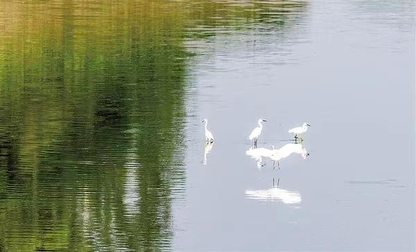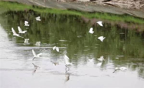 洼冲沟是一条流经周口市中心城区的河流,经过综合治理后,从一条臭水沟变成了风景秀丽的观光河,成为市民休闲赏景的好去处。良好的生态环境,还吸引了众多白鹭在此捕鱼、嬉戏。(孙红光 孙安平文/图)
