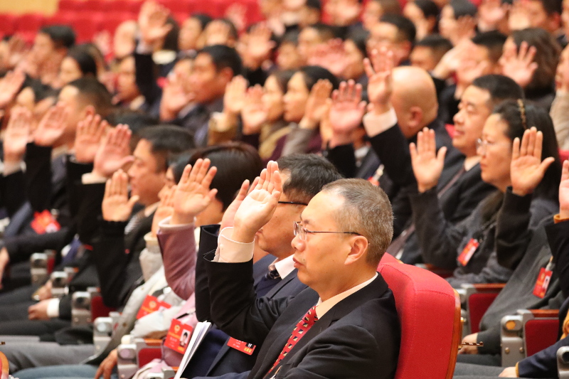 2月9日,政协委员们举手通过了大会的各项决议草案。记者 刘俊涛 梁照曾 摄