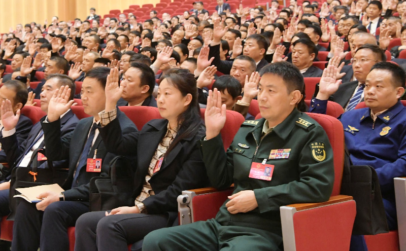2月10日下午,市五届人大五次会议第三次全体会议上,代表表决各项决议草案。 记者 王映 刘俊涛 梁照曾 摄